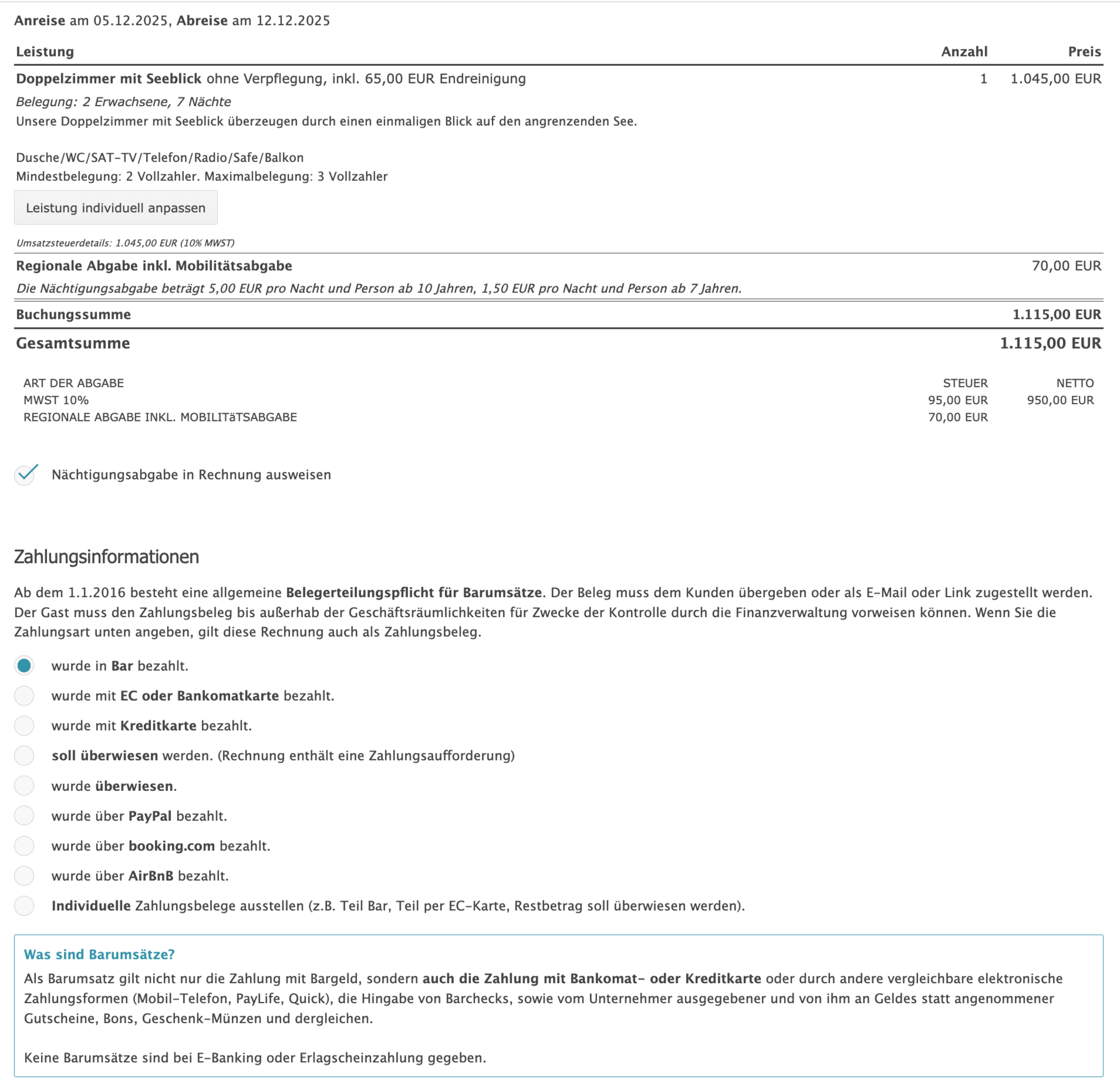 , unabhängig davon, ob diese telefonisch, per E-Mail, vor Ort oder auf privatem Weg zustande kommen. Angebote lassen sich flexibel erstellen, versenden oder ausdrucken, ebenso wie Abschluss- und Anzahlungsrechnungen. Damit bleiben Sie unabhängig in der Kommunikation mit Ihren Gästen und reagieren schnell und professionell auf jede Anfrage.