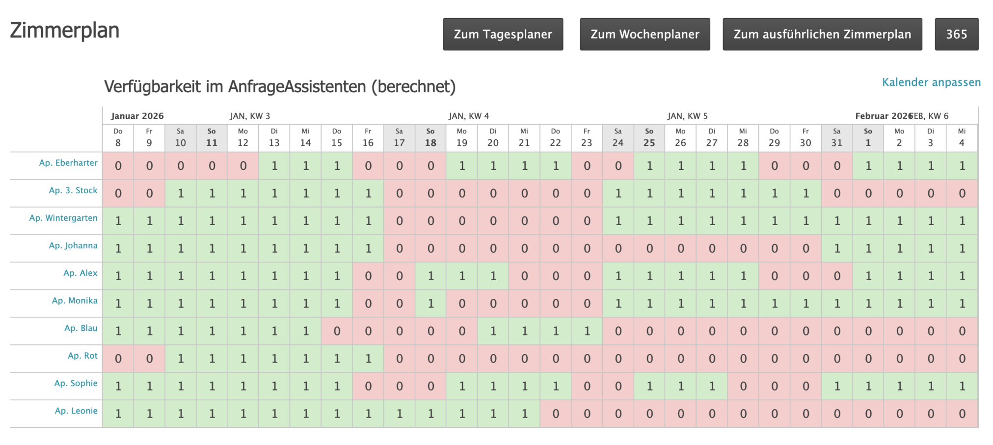 Verfügbarkeitssteuerung bietet die Vollversion klare Vorteile: Sie können Zimmer kurzfristig sperren oder freigeben, etwa für Renovierungen oder eine kurze Auszeit. Änderungen im Verfügbarkeitskalender oder Zimmerplan werden in