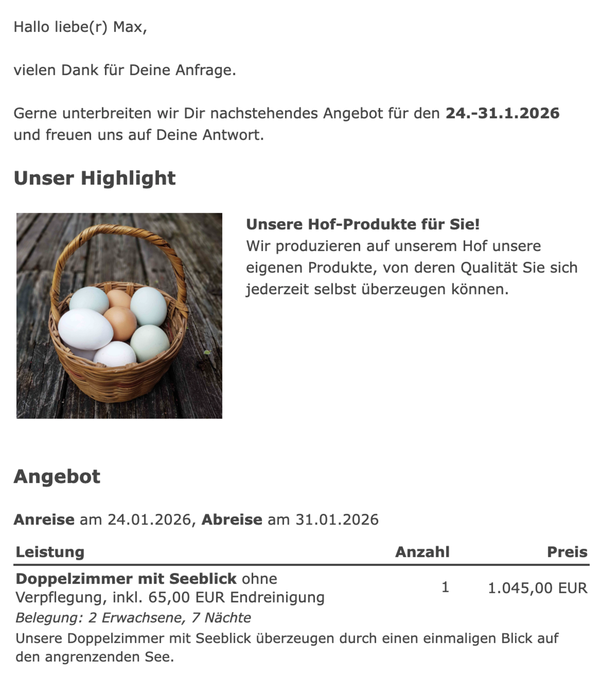 überführt werden. Das spart Zeit und erhöht die Chance, aus einer Anfrage eine verbindliche Buchung zu machen.
